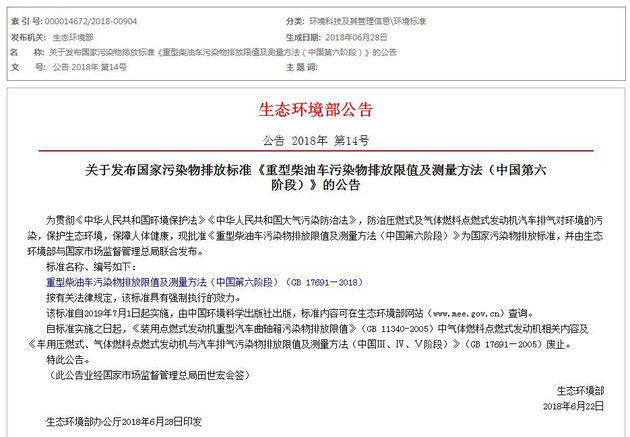 2016年底,《轻型汽车污染物排放限值及测量方法(中国第六阶段)》出台。2018年6月,《重型柴油车污染物排放限值及测量方法(中国第六阶段)》出台。两项标准的出台,标志着"国......