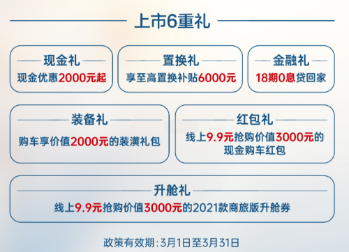 除了产品价值焕新升级,2021款M4还为消费者带来了钜惠的购车政策,不仅能享受置换、金融等购车优惠,即日起购车的用户可以享受9.9元抢价值3000元的现金购车红包以及9.9元抢价值3000元的升舱券等大礼!另外,购买瑞风M4商旅版的用户,只用加2000元就可升级为2021款新车型,这波羊毛不容错过!配合超长的质保政策、超低的维修保养费用,让用户买的实惠,用着也更省钱省心。